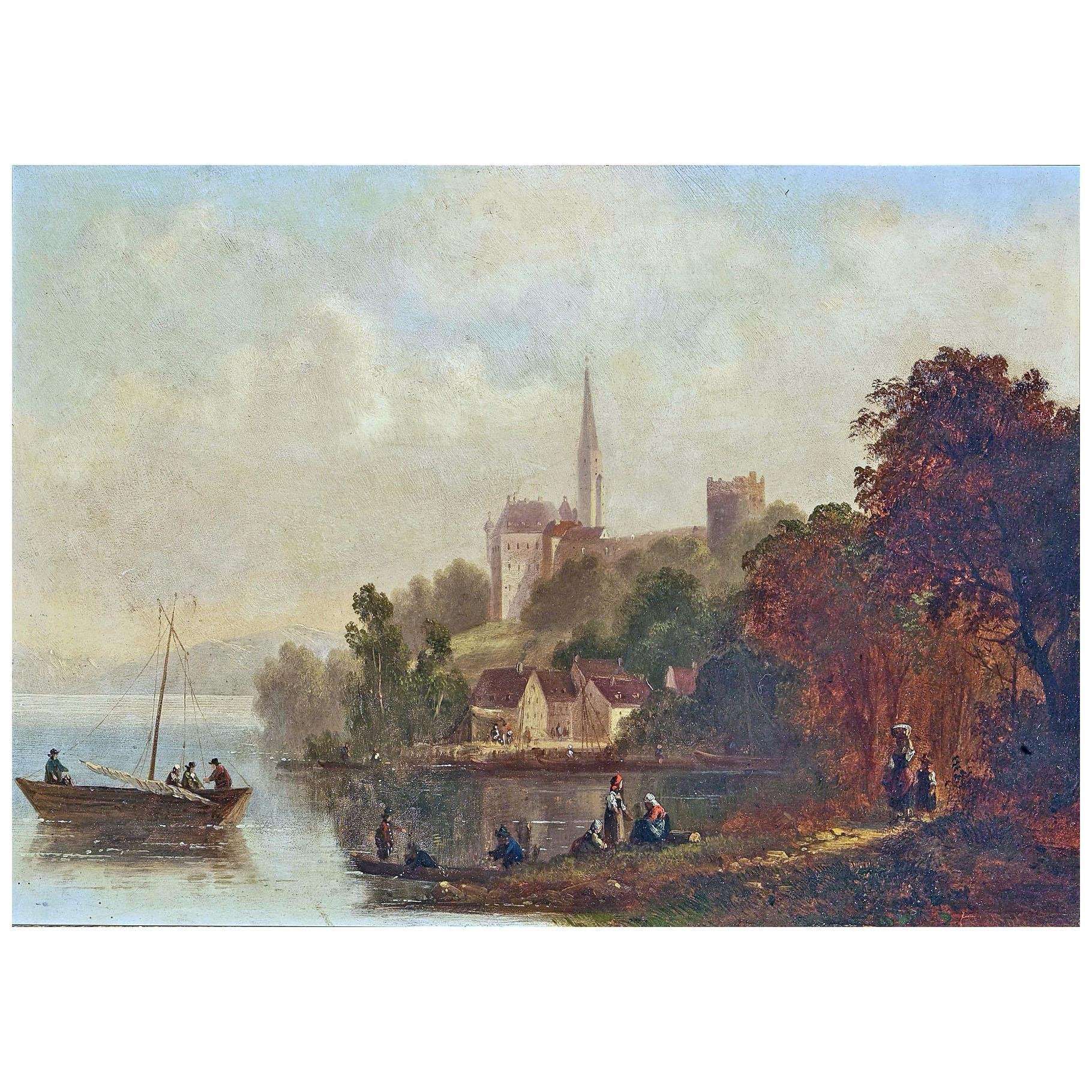 [29.07.2025] Anton Doll. Landschaft am Ufer mit Burgruinen und Kirchturm