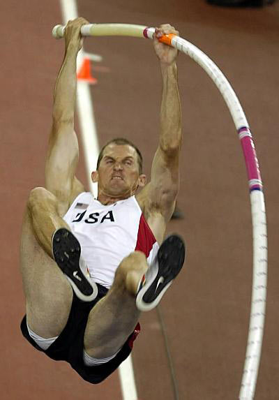 Тимоти Мэк выиграл золотую медаль у Тоби Стивенсона, своего соотечественника, буквально вырвав победу из его рук своим блестяще исполненным прыжком в последней попытке. 27-семилетний Тоби вышел в лидеры после того, как Тимоти неудачно исполнил прыжок с шестом на 5.65 м, покорив эту высоту лишь со второй попытки.